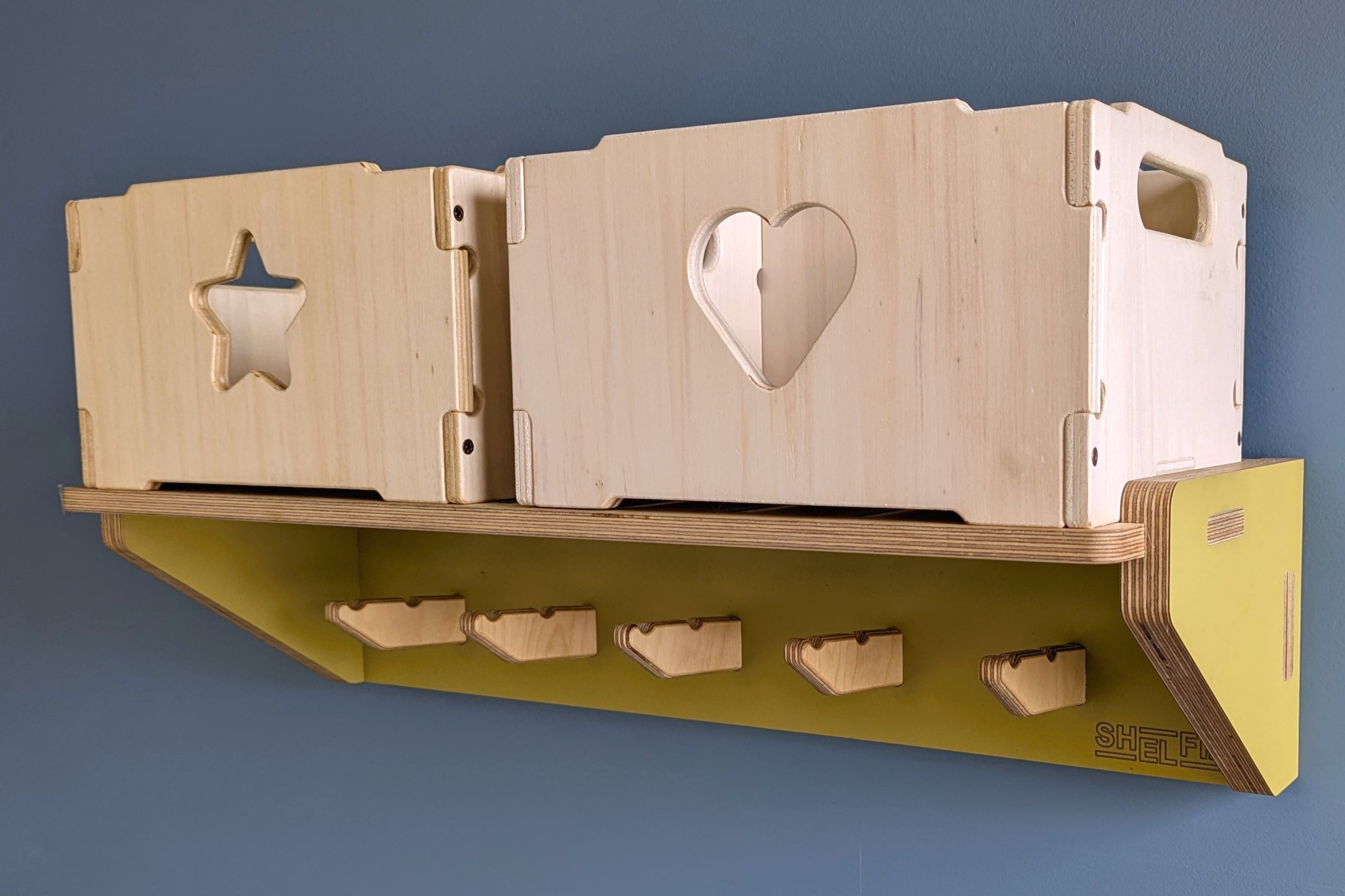 Designed to sit snugly on top of all of our SHELFIEs. All the crates come with clever cutouts to provide for some ventilation and to give you a sneak peak of what is inside when your crate is up on your SHELFIE.